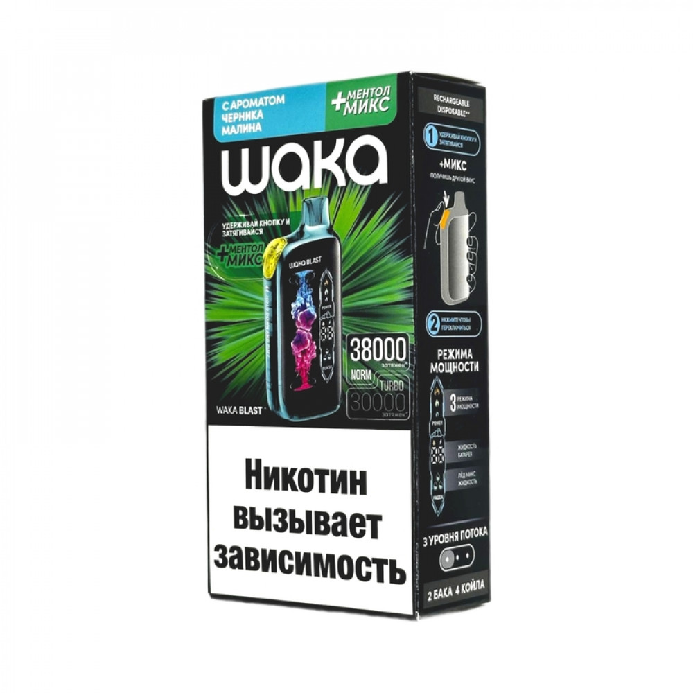 WAKA BLAST 38000 Hard - Черника малина + ментол микс - купить в Валуйках